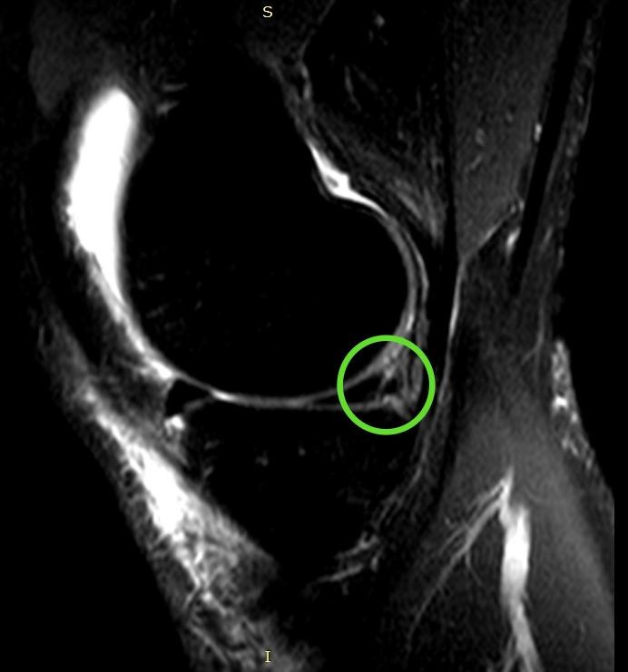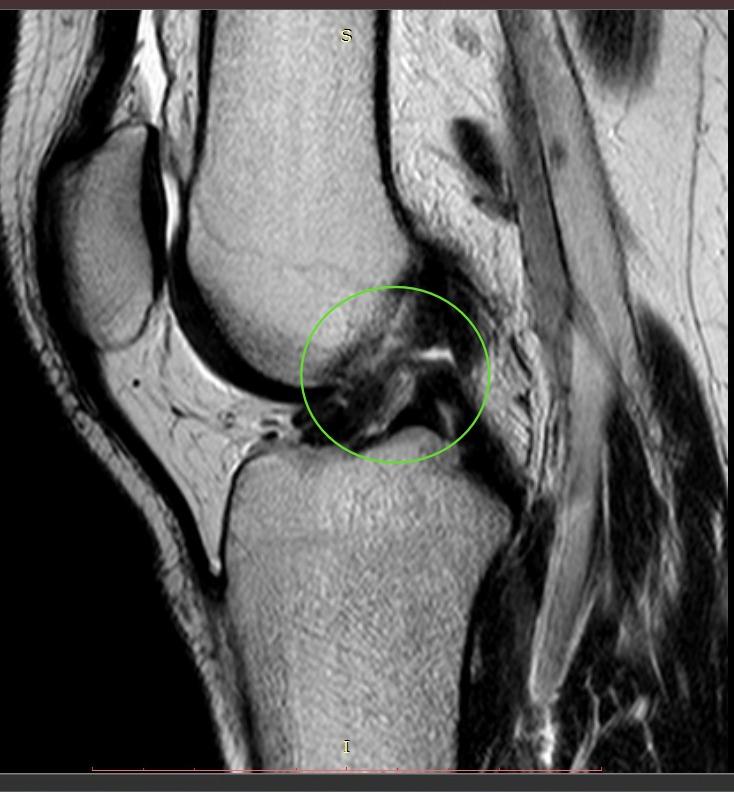 Субтотальный разрыв передней крестообразной связки, частичное повреждение медиальной коллатеральной связки и структур латерального коллатерального комплекса, околокапсулярный разрыв заднего рога медиального мениска.
