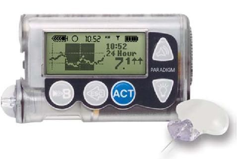Помимо этого, в настоящее время существуют такие портативные устройства как инсулиновая помпа с измерением глюкозы крови и монитор для определения гликемии (рис.3), которые позволяют пациенту с сахарным диабетом не только видеть изменения гликемии на дисплее в режиме реального времени, но и получать предупреждающие сигналы об опасных уровнях сахара крови и оперативно изменять терапию, достигая хорошего контроля диабета с низкой вариабельностью гликемии в кратчайшие сроки.